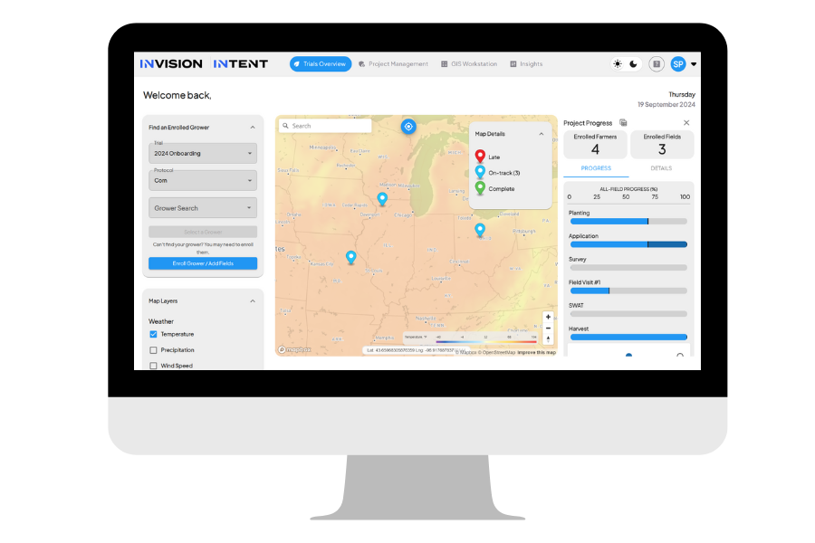 INVISION integrates data from multiple sources: machine data, weather, soil, and satellite imagery. By providing a holistic view of field trials, INVISION enables agribusinesses to make decisions that are grounded in reliable, real-time data. Whether you’re optimizing product forecasting, developing marketing strategies, or advancing products with confidence, INVISION helps you apply your data effectively.
